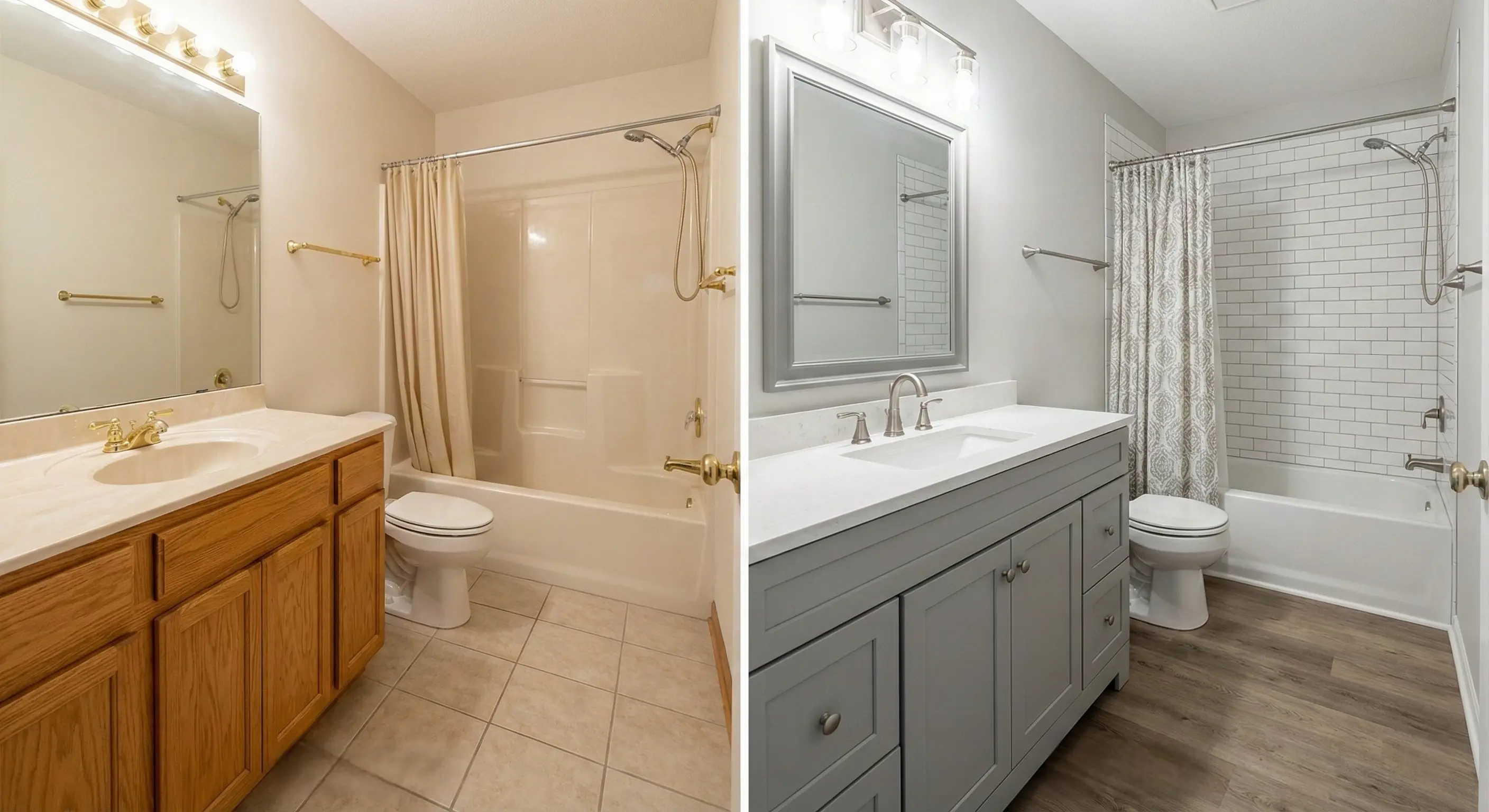 Most bathroom renovations take 2-4 weeks depending on scope. Simple updates like vanity and fixture replacement can be done in 1-2 weeks, while complete gut renovations may take 4-6 weeks.